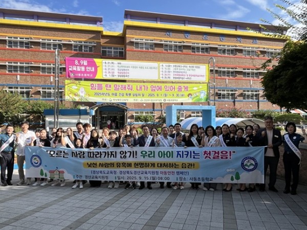 경산교육지원청(교육장 정수권)은 15일 사동초등학교 앞에서 범죄 예방 캠페인을 실시했다.